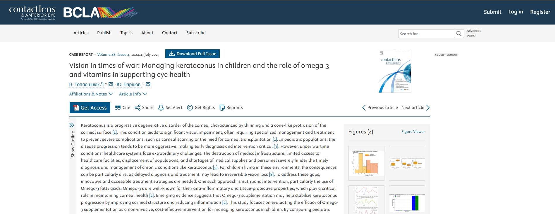 | Ключові слова: | Vision in times of war: Managing keratoconus in children and the role of omega-3 and vitamins in supporting eye health |