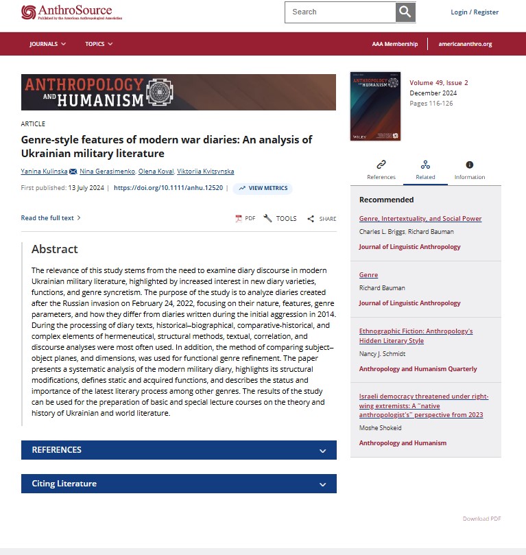 http://ir.librarynmu.com/handle/123456789/16953| Назва: | Genre-style features of modern war diaries: An analysis of Ukrainian military literature |