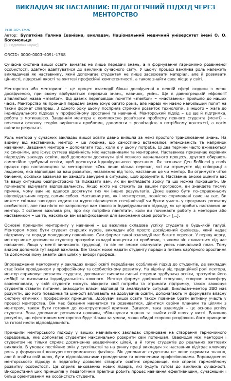 | Інші назви: | ВИКЛАДАЧ ЯК НАСТАВНИК: ПЕДАГОГІЧНИЙ ПІДХІД ЧЕРЕЗ МЕНТОРСТВО |