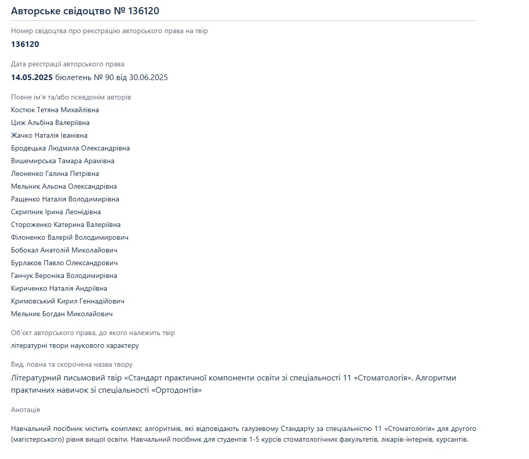 | Розташовується у зібраннях: | Патенти кафедри ортодонтiї та пропедевтики ортопедичної стоматології |