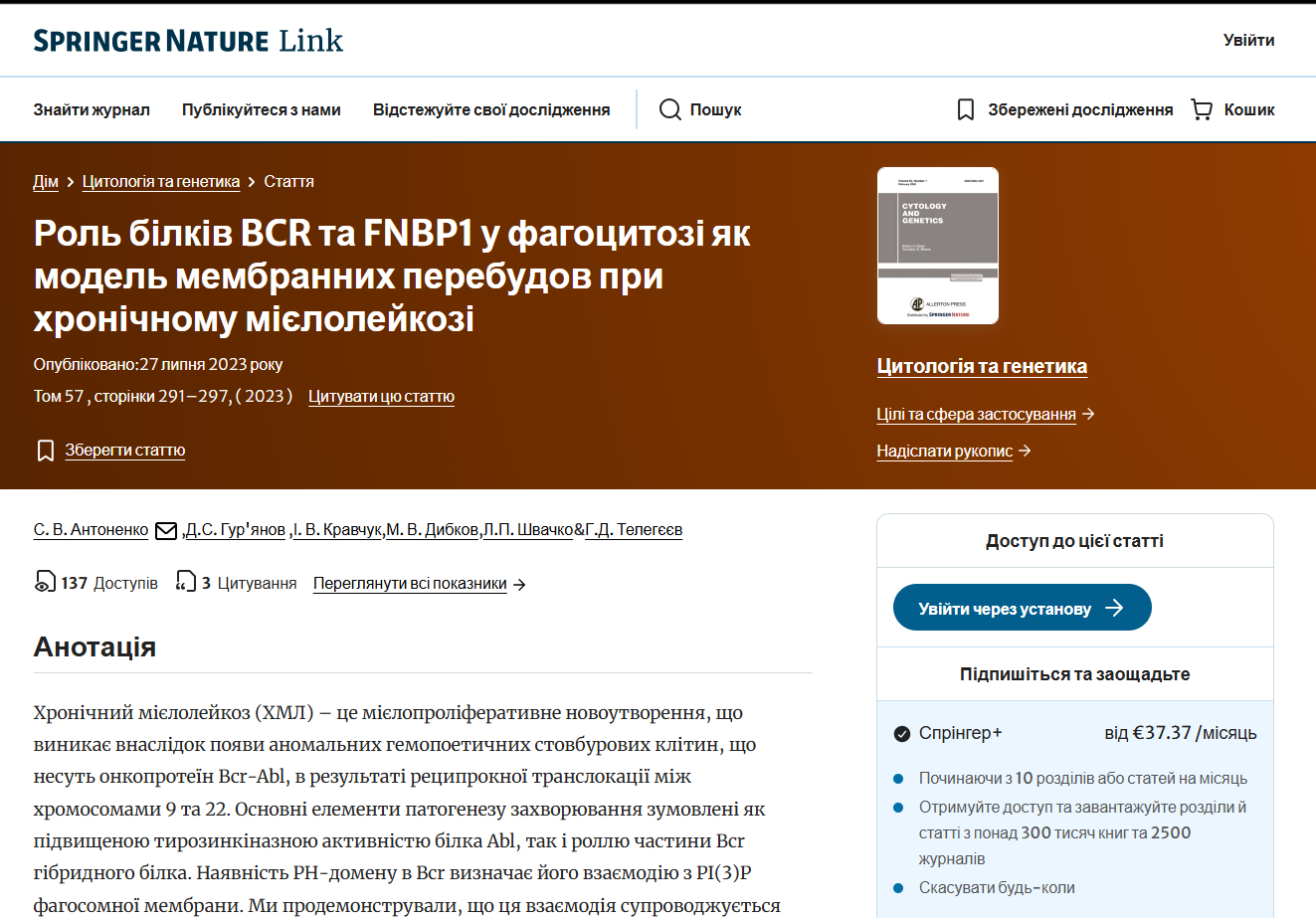Видавництво: Cytology and Genetics