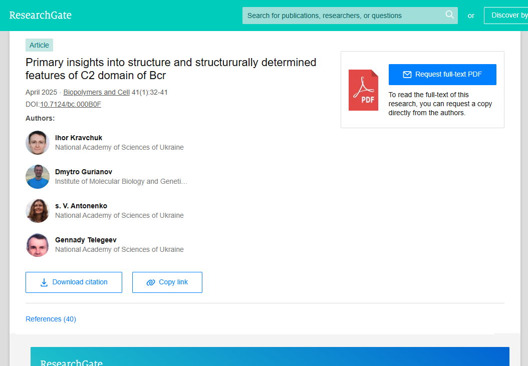 Короткий огляд (реферат): Стаття доступна за запитом за посиланням: https://www.researchgate.net/publication/390763177_Primary_insights_into_structure_and_structururally_determined_features_of_C2_domain_of_Bcr